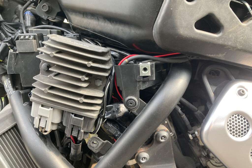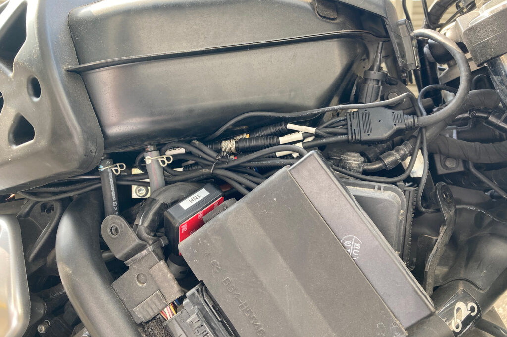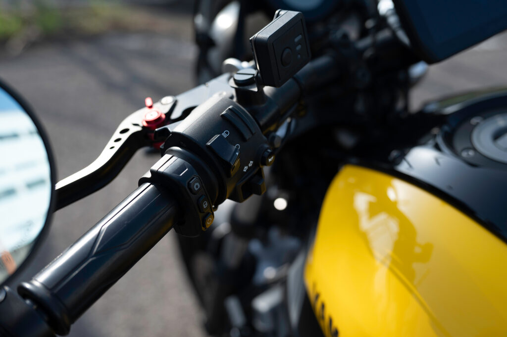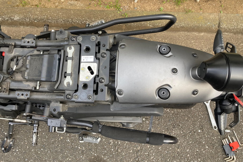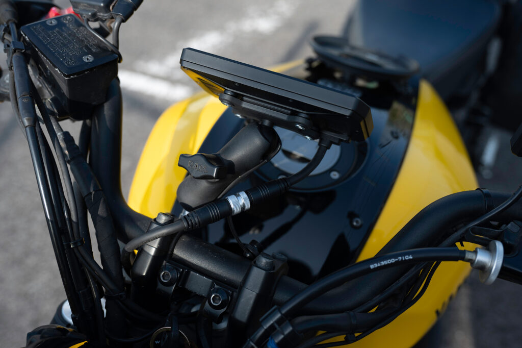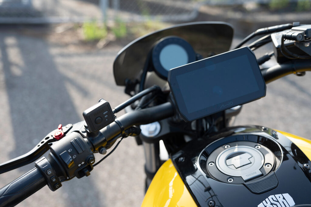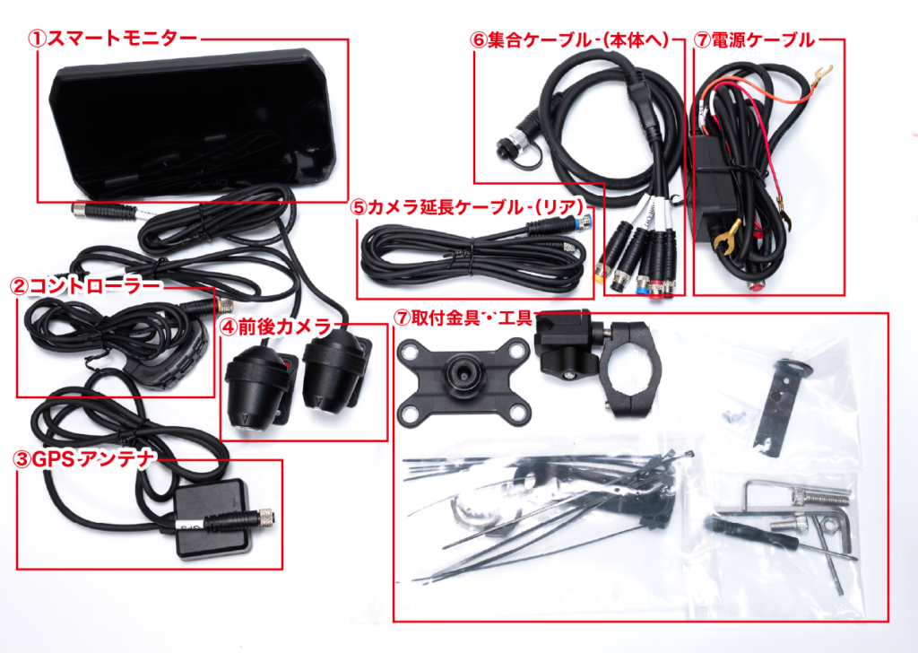 ドラレコ付きスマートモニター 「Daytona MiVue MK50」レビュー カスタム X Facebook はてブ Pocket LINE コピー 2026.04.13 数年前からバイク系インフルエンサー界隈で見かけるようになったドラレコ付きスマートモニター。アマゾンで検索するとセキュリティから情報表示までトッピング全部のせみたいなパッケージをよく見かけるようになりました。以前は価格的にも手の出しにくいカテゴリでしたが、最近は参入メーカーも増え低価格な製品も増えてきたようです。 ガジェット好きとしてはやはり食指が動くもので、代替として小型タブレットなど付けてみたりもしてみました。ただドラレコだけはどうしようもなく、スマートモニタータイプの価格がこなれてきた今ならセットで導入しても良いか、ということで今回「Daytona MK50」を購入してみました。 デイトナ(Daytona) Mio(ミオ) バイク スマートモニター ドラレコ 前後カメラ 駐車監視 CarPlay Android Auto対応 5.5インチ ディスプレイ SONY製STARVIS2搭載 防水 防塵 MK50 61612 デイトナ(Daytona) ¥55,044 (2026/04/11 23:59時点 | Amazon調べ) Amazon 楽天市場 メルカリ ポチップ Daytona MiVue MK50 激安から高価なものまである中から今回MK50を選んだ理由は以下のとおりです。 DFS対応 スマートモニターを調べてみると必ず触れられるのが日本の電波法の問題。屋外で5Ghz帯の電波を使用する場合、気象レーダーなどに干渉しないことを検知するためにスマホとの接続まで1分の待機時間が義務付けられています。安価な、特に2万円前後の製品はDFS対応の明記がされていないものが多いです。これらは法に抵触する可能性があるのでまっさきに選択肢から外しました。Youtubeのレビューなどで「すぐ繋がる!」的な紹介をしている製品がありますが、あれらは大丈夫なんですかね… カメラ性能 安価な製品はやはりカメラのスペックがコストに反映しているようで期待できない印象でした。いざという時の保険のためのドラレコですから、そこがおざなりになっていては本末転倒でしょう。一番悩んだのはほとんどの製品が「ソニー製カメラ搭載」を謳っていてる点。どれも同じように見えてしまうのですが当然ながら同じソニーでもグレードや世代が違えば性能も変わります。そもそもカメラセンサーについてはソニーが寡占状態でしょうから、ソニーのカメラを搭載しているのは当然と言えば当然ですよね。とりあえず現状最新のセンサーであると思われる「STARVIS 2」が暗所性能も良好のようなので考慮に入れました。 生産国 最後に生産国。いつ壊れてもあきらめが付くような、あってもなくても良いようなものならば中華製でも良いのですが、安いといっても精密機器ですしそれなりに耐久性が担保できないと安心できません。安価な製品のレビューを見ていると1か月で壊れたとか突然液晶パネルが外れたとか、そんなの見たら怖くて付けられません。深センを代表する中華製品のデジタル技術の向上は一定の評価をしていますが、工業製品の信頼性という点では中国製品はまだまだ。やはり今でも日本製と台湾製の信頼感は高いです。 そんな理由からMK50の購入に至りました。Daytona MK50は台湾Mio社のOEM製品でカメラはsonyのstarvis2を搭載。当然国内メーカーの取り扱いですからDFSも対応しています。モニターサイズ5.5インチとそこまで大きくないのが気になるのと5万円前後と安くはない価格帯ですが、現状ある製品群では一番無難な製品かなと思います。 XSR700への取り付け 製品によっては電源はUSB一本で済むものもありますが、MK50はバッテリーとACCから配線するタイプのものになります。最初USBで繋げられるほうが簡単かな…と思ったのですが、結局カメラを取り付けるのにバラす必要はありますし、そのついでにバッテリーへ繋ぐだけなので作業工数はさほど変わらない。また電気的な知識もバッテリー端子の外す順番とかACC端子の場所だけ分かれば良いので、そこまで難易度も高くはないです。とは言え慣れていない分解やらケーブルの取り回しやらで、素人だとそれなりに時間がかかると思います。自分の場合は最初の週末で5,6時間、翌週取り回しとカメラの本設置で2,3時間くらいかかりました。 パッケージ内容 MK50に同梱されている部品は以下のとおりです。 ざっくり左側が外部に取り付けるもの、右上が内部配線、右下が金具・工具になります。各端子は集合ケーブルに集めてモニターに接続するかたちになるので、ケーブルの取り回し自体はそこまで複雑ではありません。ただこれだけのケーブルを内部に収めなければならないので、収納スペースの少ないXSR700では頭の痛いところ…実際余ったケーブルの取り回しが一番思案しました。モニターマウントはボールマウントになっていて、モニター側のステーはボールの大・小2種類が付属します。小さいボールは付属のアタッチメント用で、大きいボールはRAMマウント互換になっているので、既にRAMマウントを使っている場合マウント基部は流用可能です。それでは